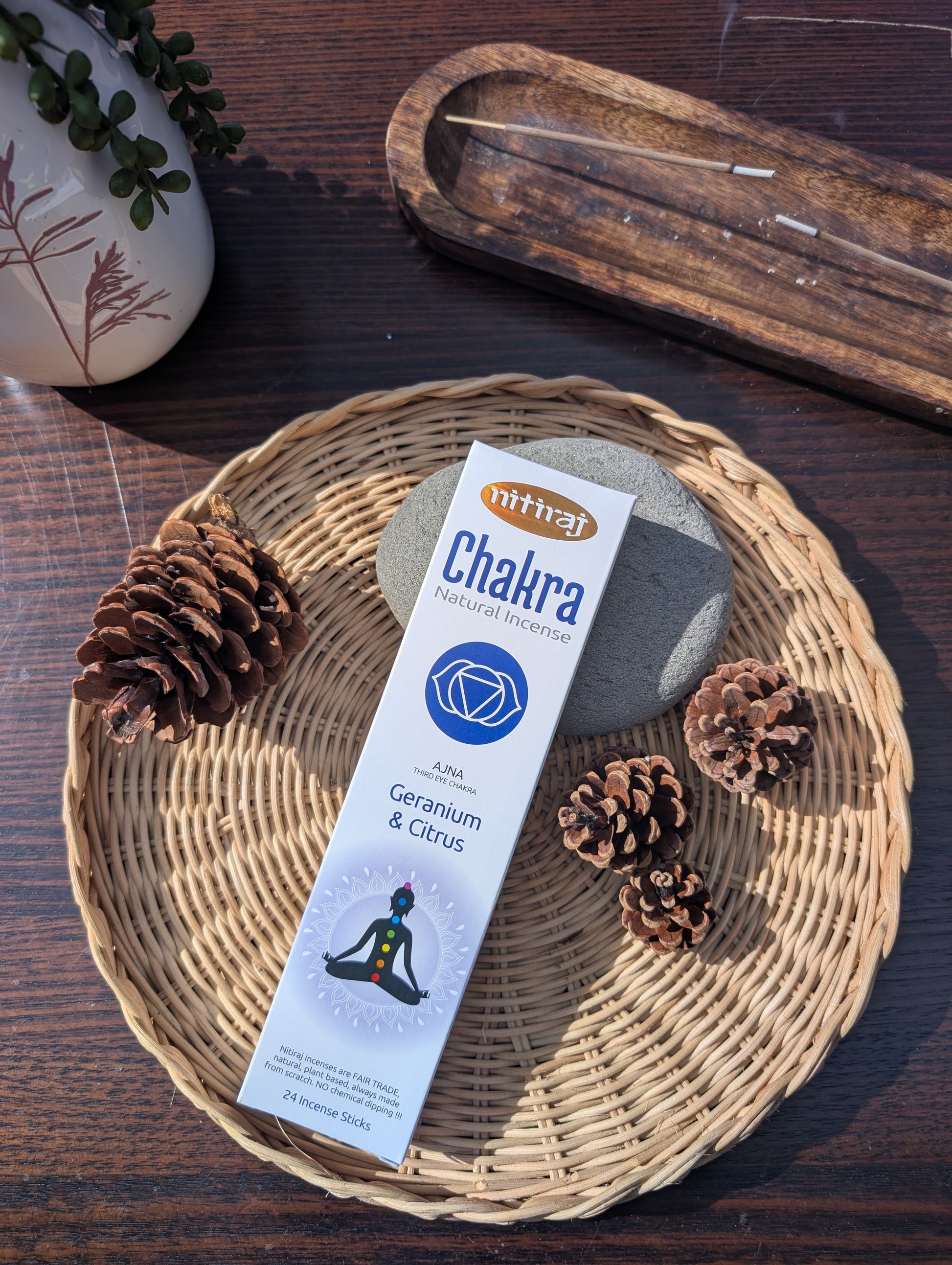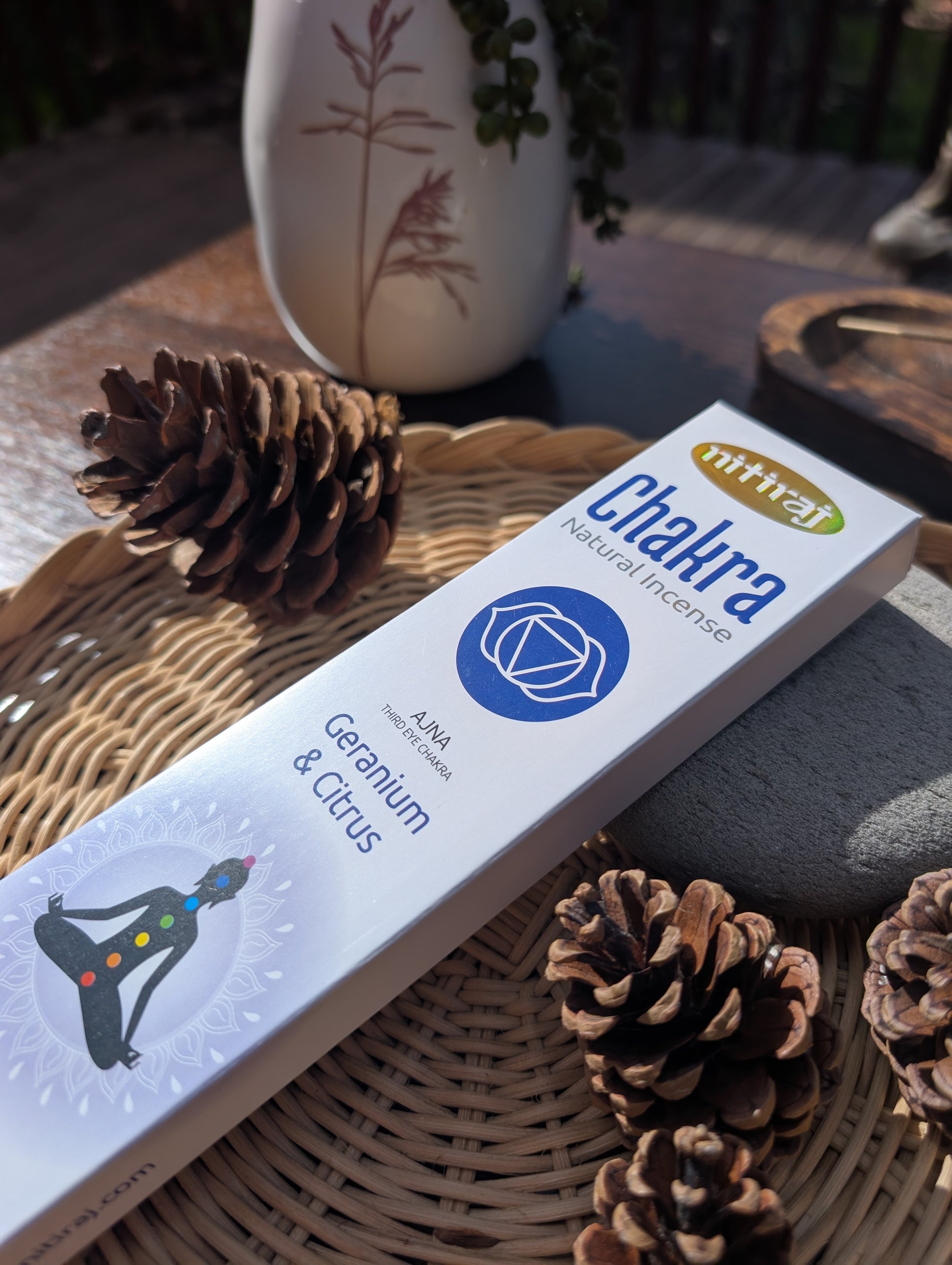 Nitiraj Incense is one of the most popular premium natural incense brands in Australia, valued for its authentic, slow-burning quality and pure, natural aromas. The 3rd Eye Chakra Geranium Citrus fragrance is designed to balance the Ajna, or Third Eye Chakra, which represents intuition, clarity, and inner wisdom. With its uplifting citrus notes blended harmoniously with soft, floral geranium, this incense creates a refreshing yet calming atmosphere, ideal for meditation, mindfulness, and spiritual practices that enhance focus and awareness.