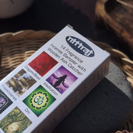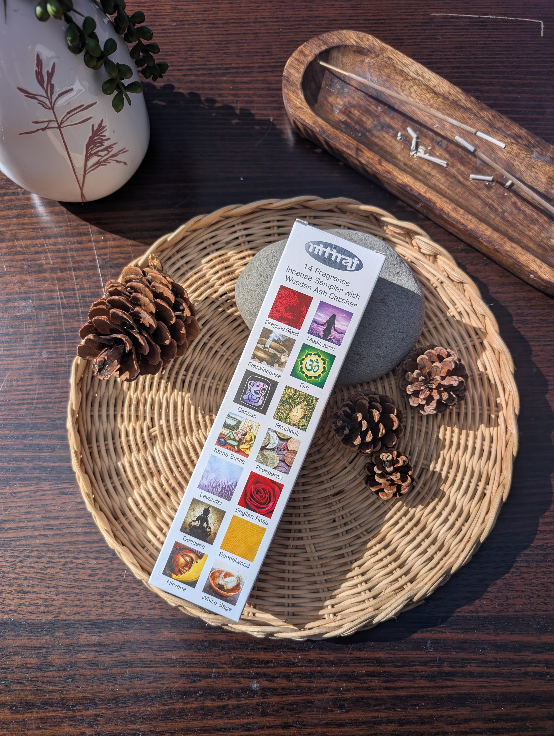 Fair Trade Natural Incense includes 14 Fragrances in a  Sampler Pack with Mango Wood Burner